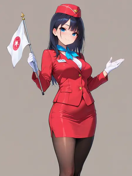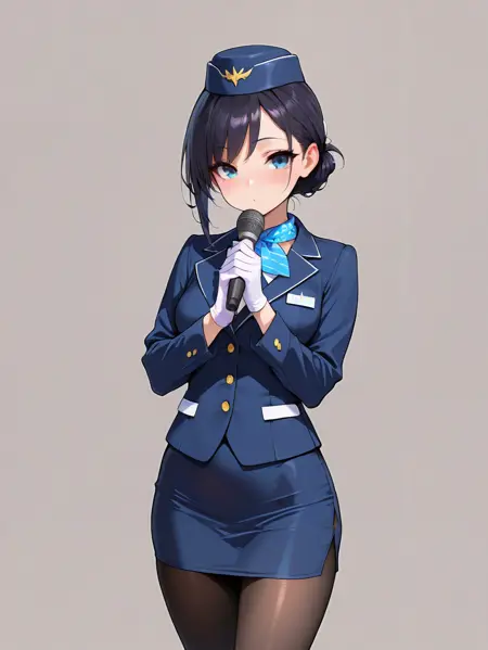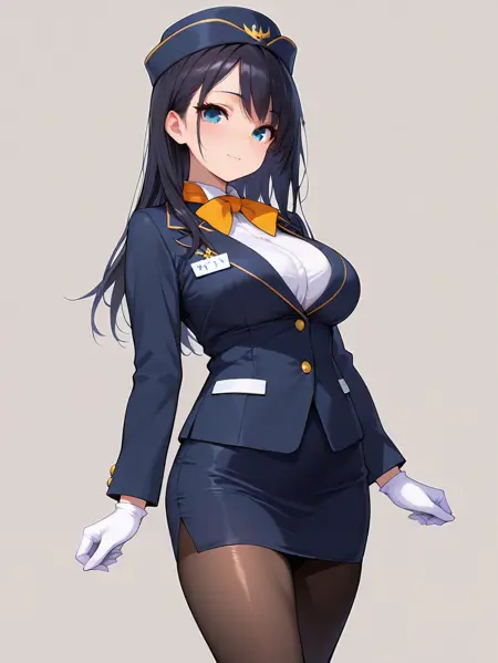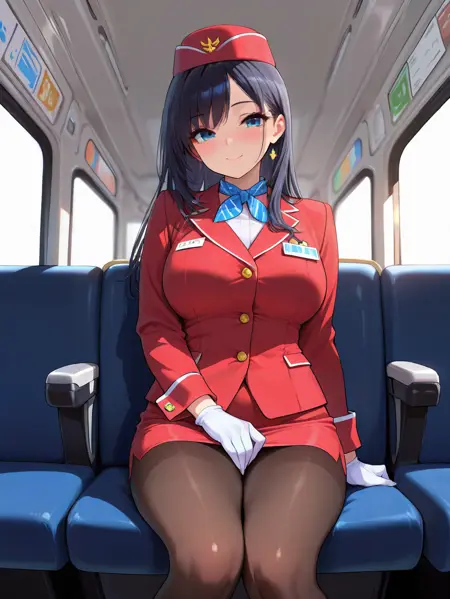 bus guide, hat, shirt, skirt, gloves, travel attendant,pantyhose