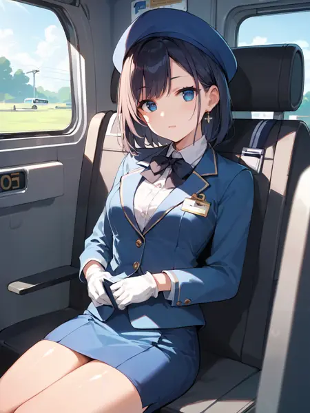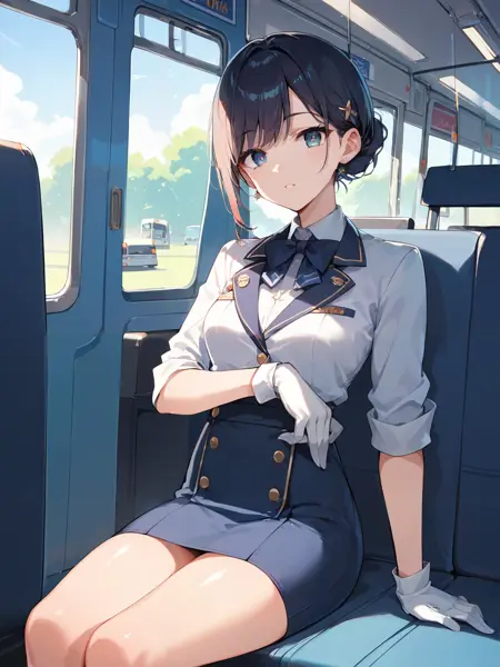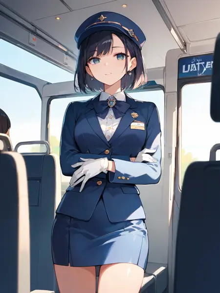 bus guide, shirt, skirt, gloves, travel attendant
