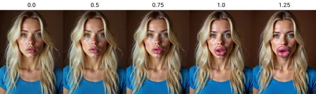 Either just a little fuller (0.75), or you can go to the extreme (1.5-2). This Lora is very flexible and adapts to what you want. Whether a special drawing style, a fantasy creatures or strange poses, this Lora will be able to help creating full lips.