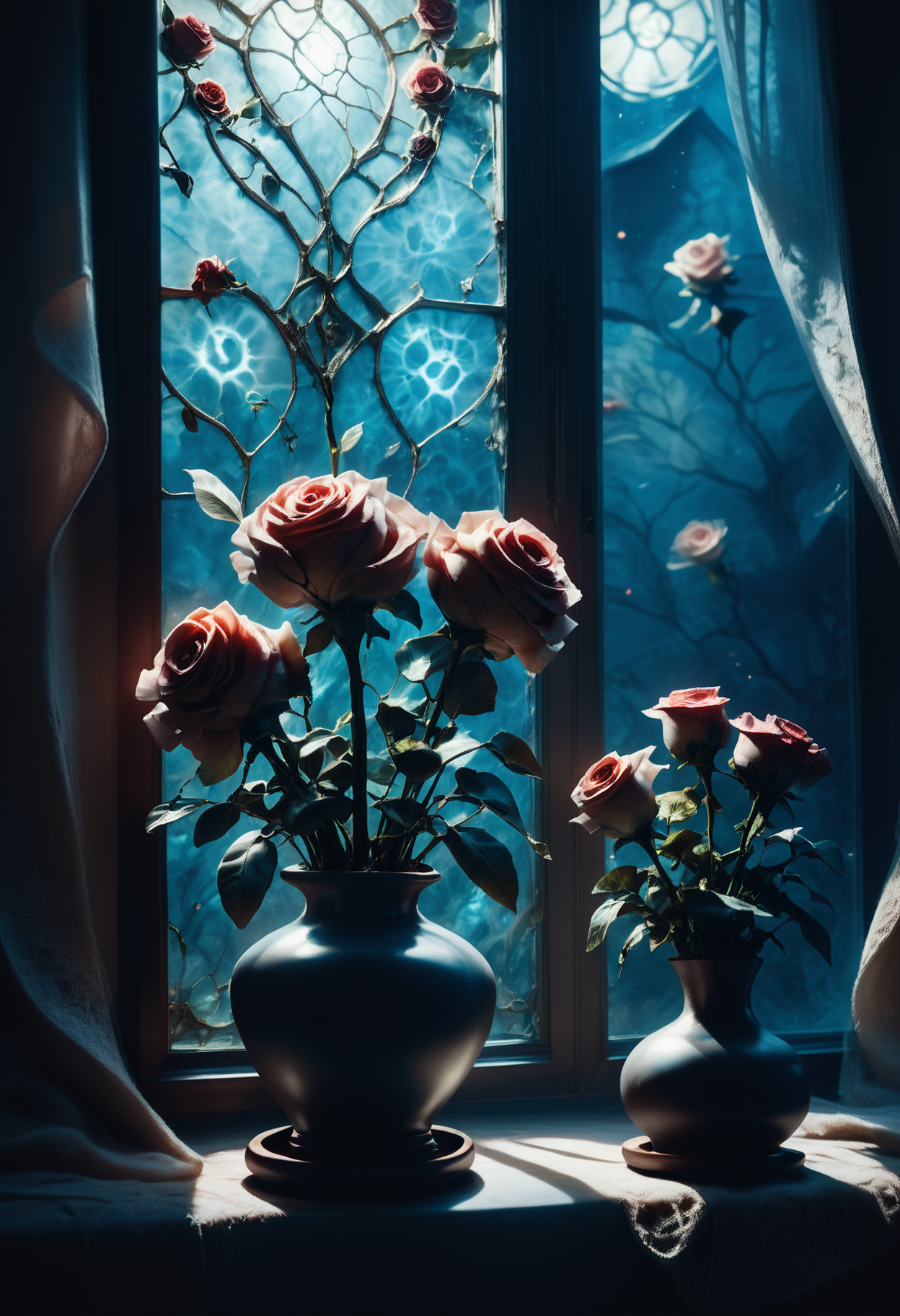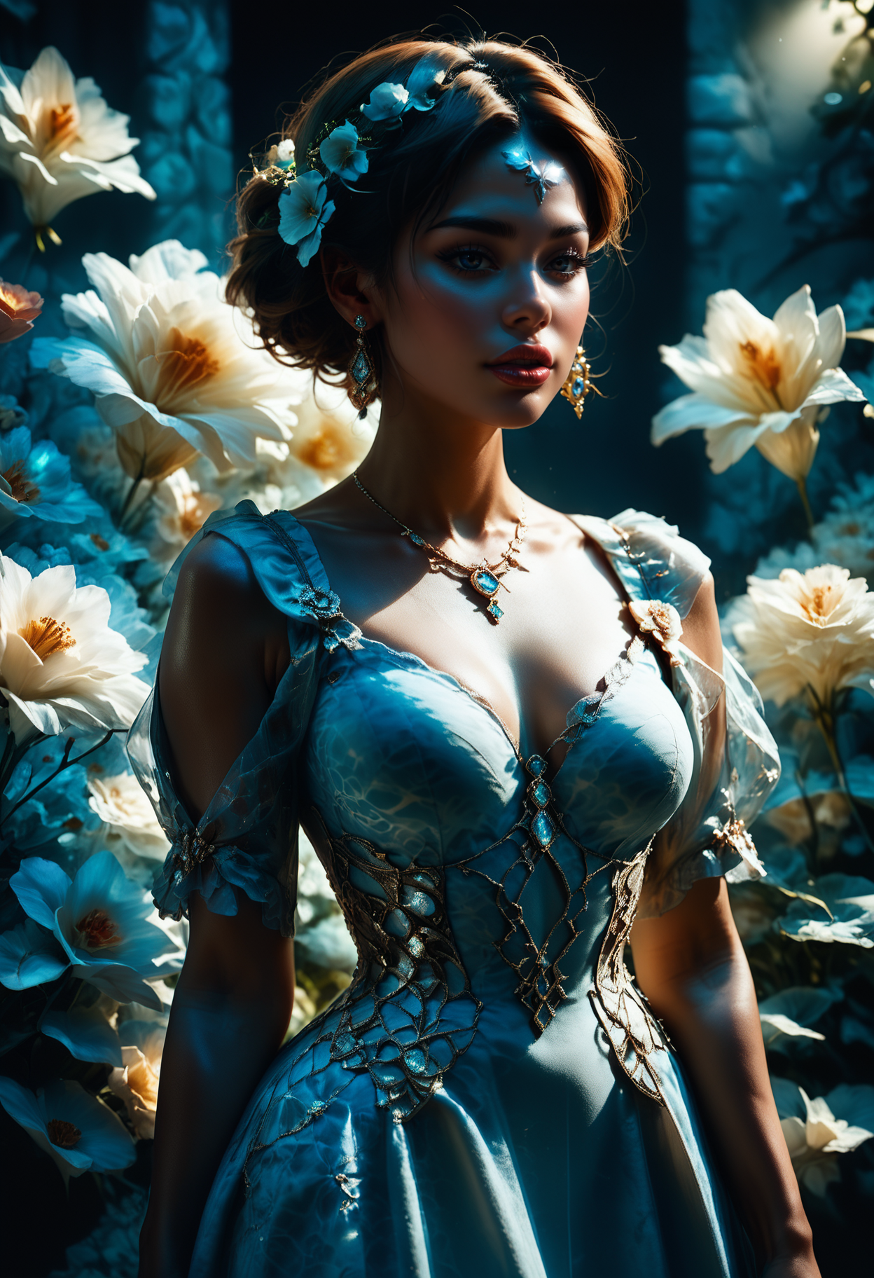 💡电影级灯光与色彩和谐 ~ 梦幻发光元素与深沉阴影形成对比,营造出近乎超现实的氛围。