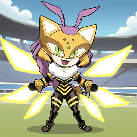 Digimon Liberatorに登場するメガレベルのサイボーグデジモン「クイーンビーモン」のモデルです。比較的新しいため、主にファンアートの画像でトレーニングされており、公式デザインとの間に不整合が生じる可能性があります。また、データセットには彼女の王座の画像がほとんどないため、王座を生成するには運が必要です。それ以外には、このモデルはさまざまなスタイルやモデルで良好に動作するようです。各バージョンの注記を確認して、その能力や潜在的な問題を確認してください。