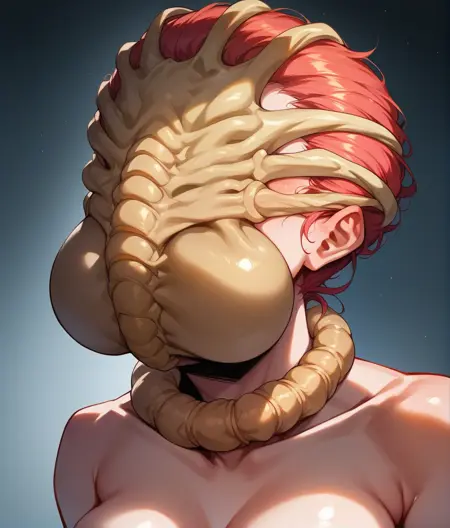 フェイスハガーが女の子の顔に吸い付いている。ポニーで学習したが、どうにもうまく機能しない。Ponymature SDXL では適度に機能し、Prefect Pony XL では良好に機能する。強度は0.7-1が適切。