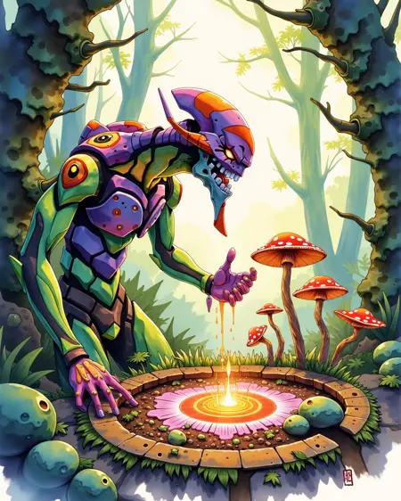 注意:这实际上并非《新世纪福音战士》LoRA;数据集基于《新世纪福音战士》风格的绘画式机械图像,但该 LoRA 并不了解这一点。标题中未提及 NGE 或 EVA,因此您可以自由用于任何用途;随意输入提示词看看会发生什么,或者直接生成 EVA 机体。