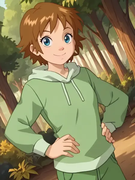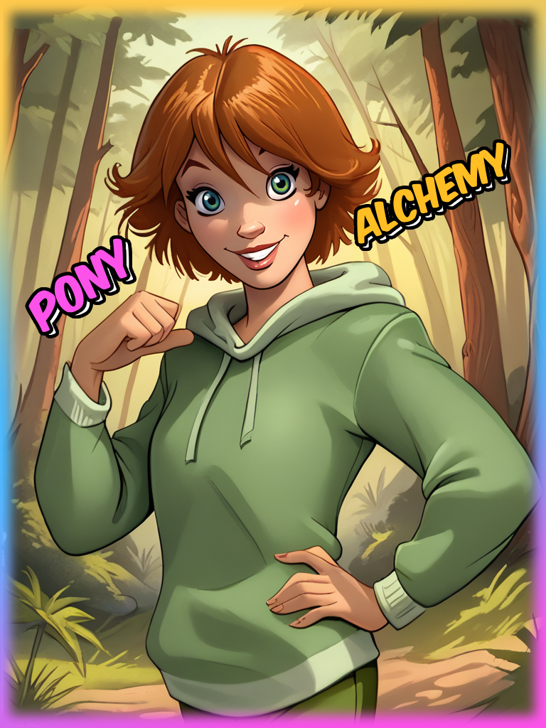 - 호출 단어 PONY: "AlchemyWitch", "갈색 머리, 녹색 눈, 단발, 녹색 후디"