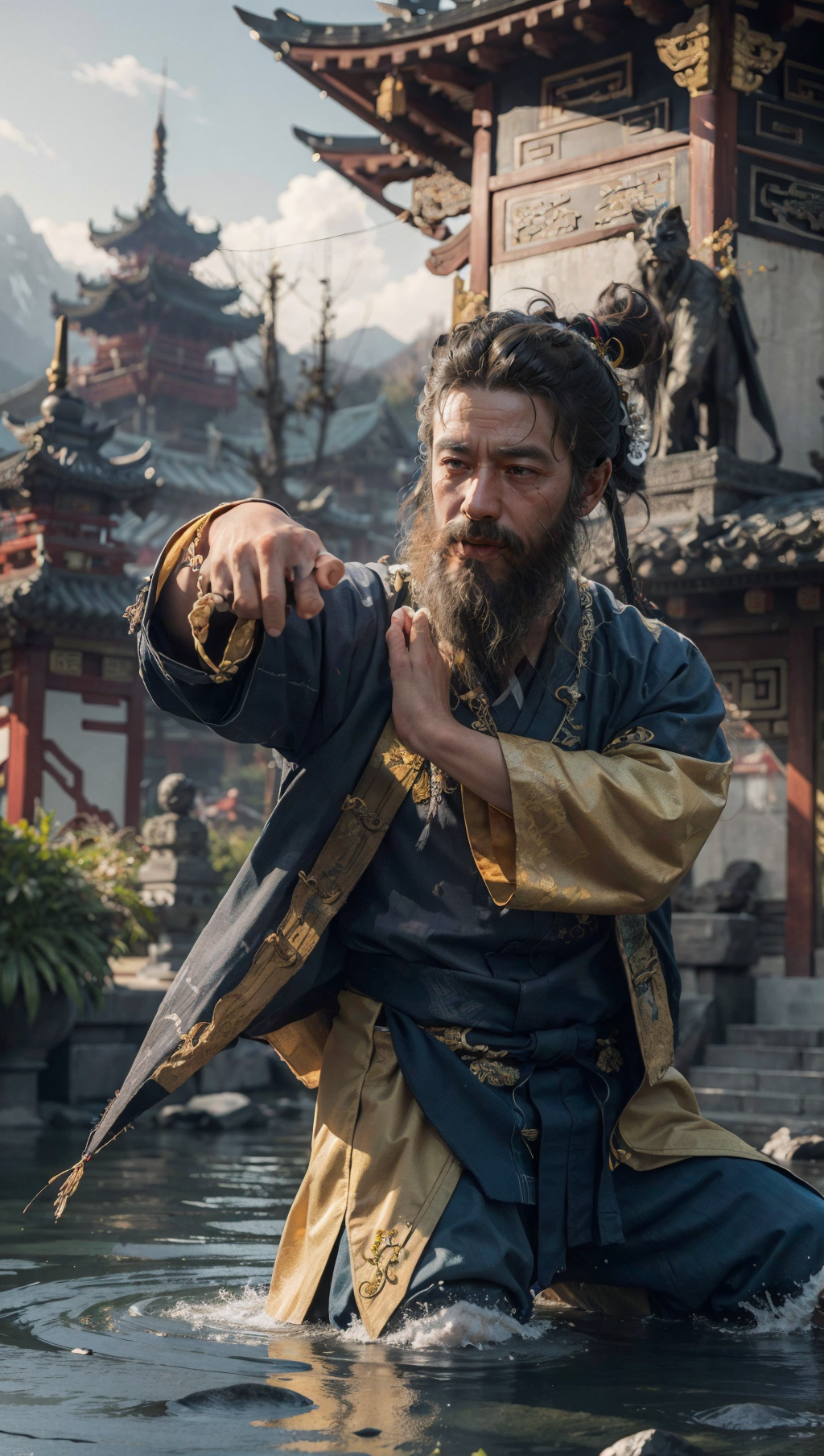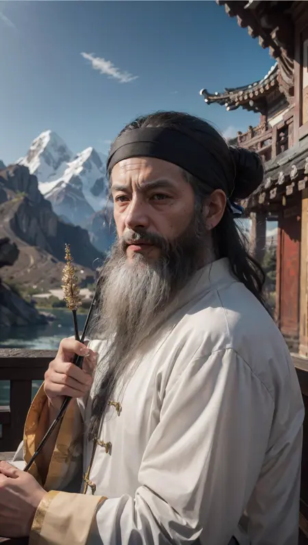 13枚の異なる512x512サイズの中国風長胡須画像(各種著名な道教徒を対象)に基づいてトレーニングされたLoRA。
