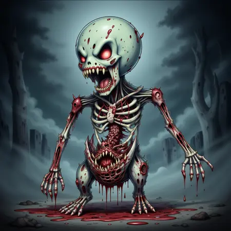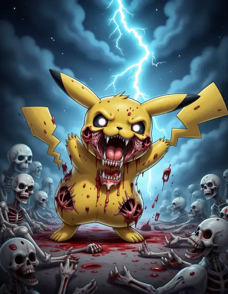 PokeZom 스타일의 피카츄, 피, 뼈, 좀비