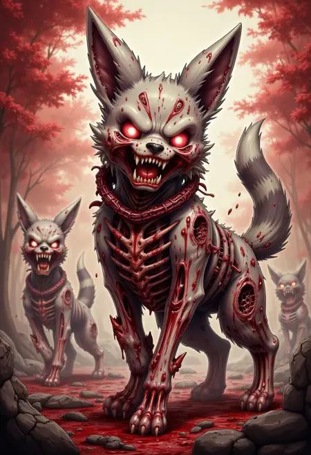 A pikachu in the style of PokeZom, blood, bones, zombie