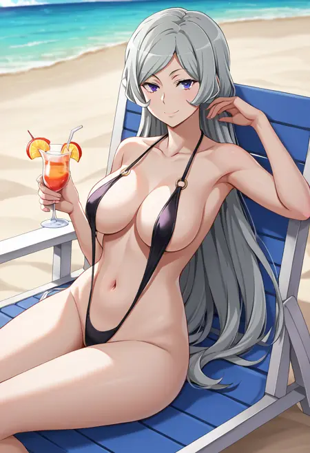 トリガー語: freya_danmachi, 長い髪, 灰色の髪, 紫の目, 公式アート