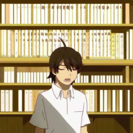1boy, araragi koyomi, black hair, short hair, hair over one eye, black eyes