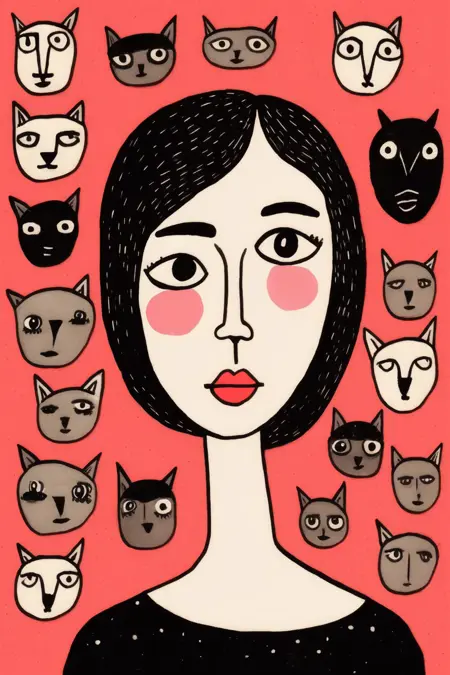 她的作品涵盖多种主题,包括动物、日常生活、心理健康以及女性主义。科尔rell的插画常常描绘人类生活中的幽默时刻,有时也展现那些令人尴尬的瞬间,为人类境况提供了轻松诙谐的观察视角。她的作品因其强烈的共鸣感而广受认可,能够引发观众的笑声与共情。