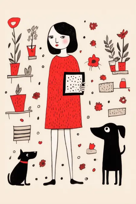 盖玛·科尔rell是一位英国插画家兼漫画家,以她机智且富有共鸣的作品而闻名。她的风格可被描述为奇异、活泼,以简洁而迷人的线条绘图为主。科尔rell常在其插画中融入手写字体和幽默的文字说明,创造出视觉与语言幽默相结合的愉悦效果。