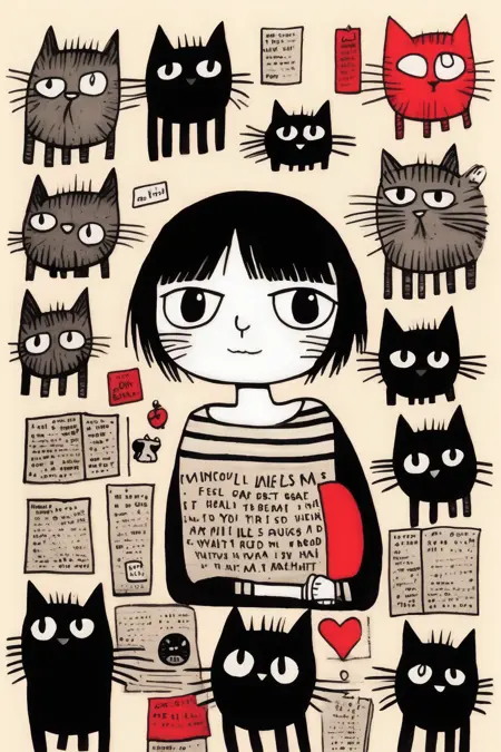 盖玛·科尔rell是一位英国插画家兼漫画家,以她机智且富有共鸣的作品而闻名。她的风格可被描述为奇异、活泼,以简洁而迷人的线条绘图为主。科尔rell常在其插画中融入手写字体和幽默的文字说明,创造出视觉与语言幽默相结合的愉悦效果。