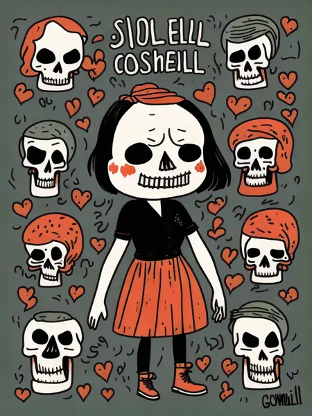 盖玛·科尔rell是一位英国插画家兼漫画家,以她机智且富有共鸣的作品而闻名。她的风格可被描述为奇异、活泼,以简洁而迷人的线条绘图为主。科尔rell常在其插画中融入手写字体和幽默的文字说明,创造出视觉与语言幽默相结合的愉悦效果。