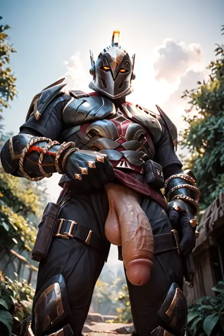 태그: aresfortnite, score_9, source_anime, 헬멧, 갑옷, 장갑, 주황색 눈