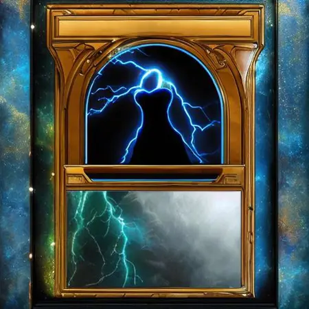 a description of the illustration: 'oval illustration space with thunder','black picture frame'