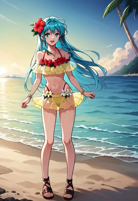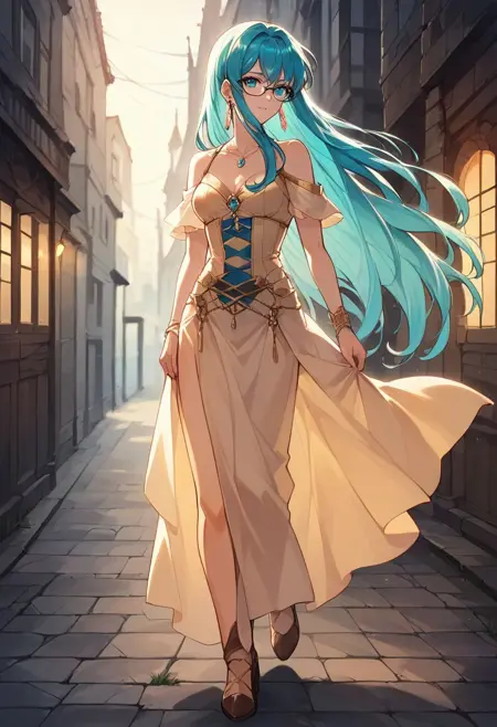 General prompts: EikFE, aqua hair, long hair, sidelocks, aqua eyes,