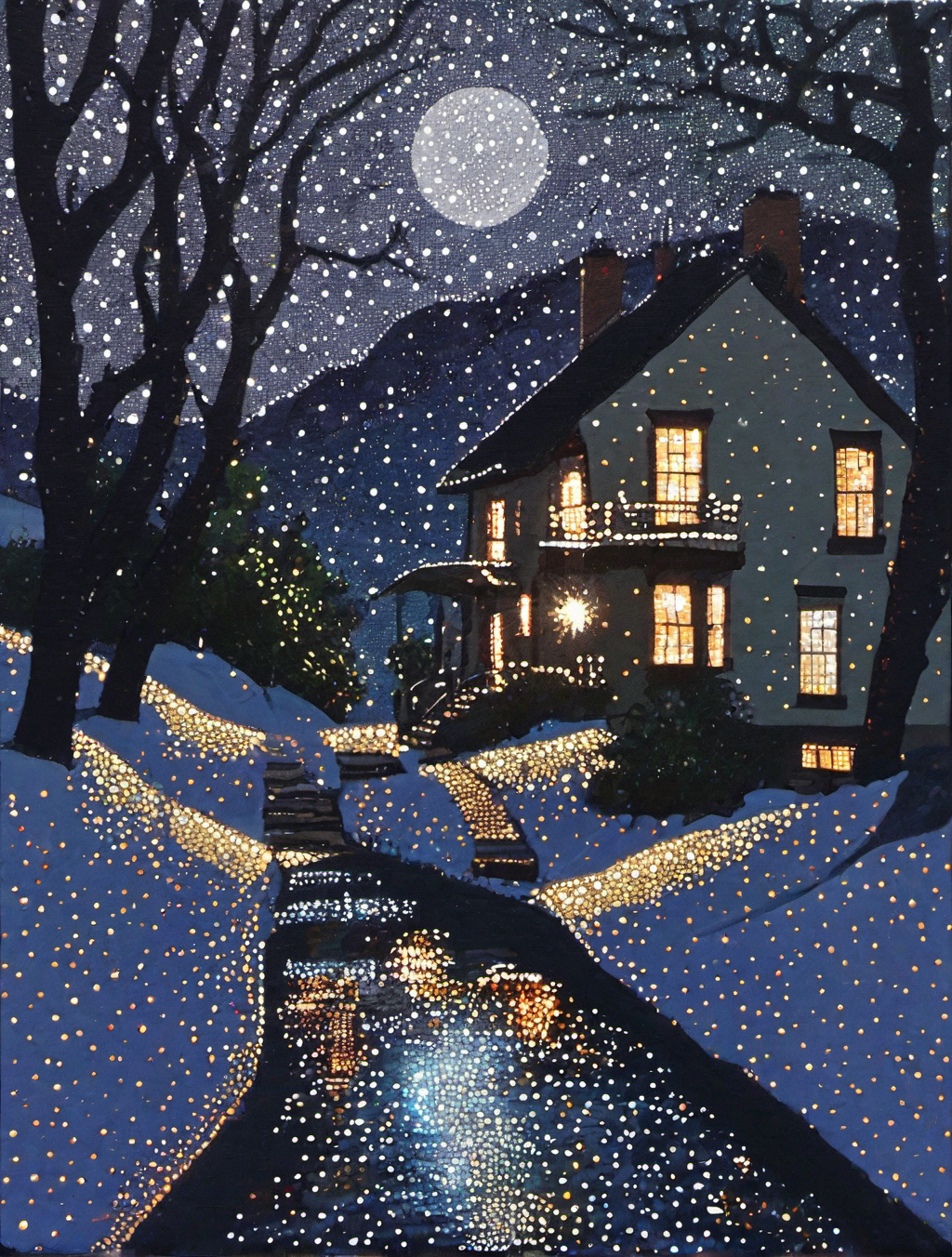 "빛나는 포인티리즘" LoRA. 이 모델은 포인티리즘 기법을 강조하고 그림에서 빛나는 효과를 부각시킵니다. 색점과 층을 사용하여 생생한 빛과 그림자 효과를 창출합니다.