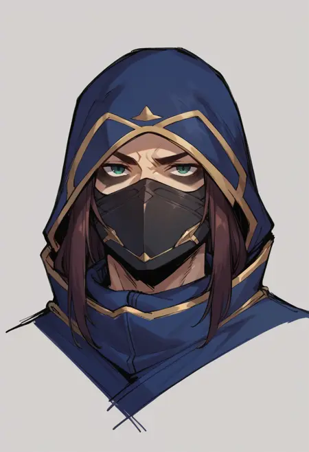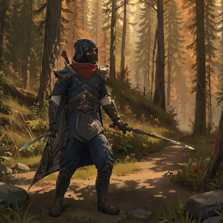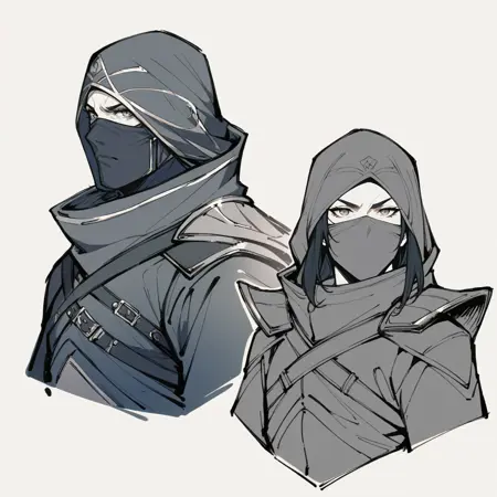 ShadowWalker, mask, hood, armor, holding sword, dual wielding,
