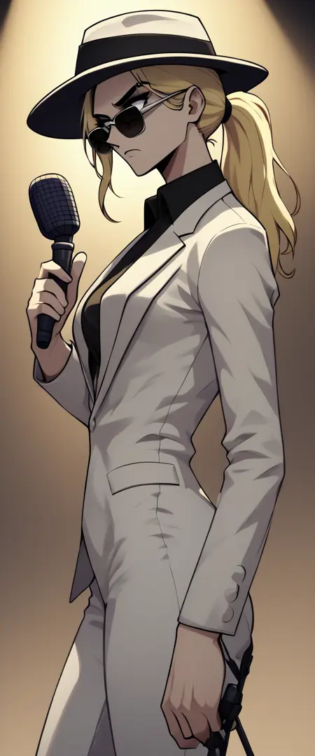 正向提示词:fnfstyle, 2d, source_cartoon, holding_microphone, looking afar, black eyes