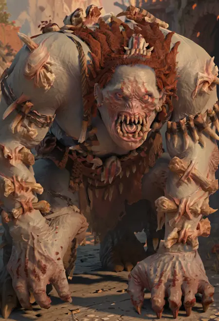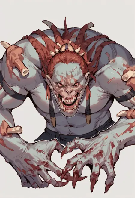 OgreGorger, monster, red eyes, blood, teeth, claws,