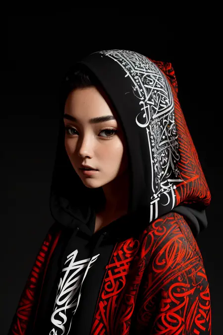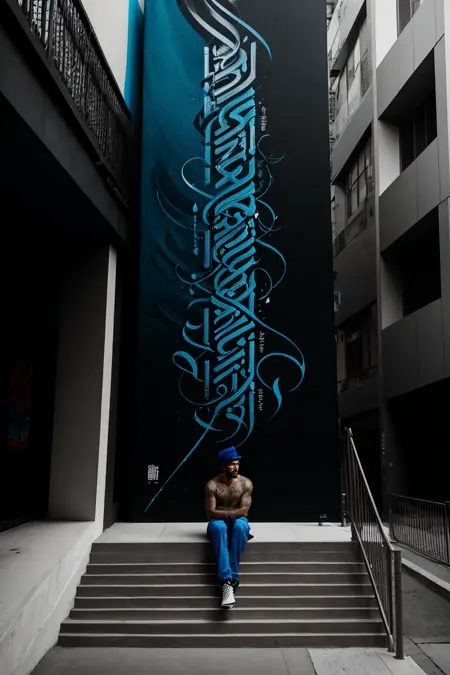 「calligraphy art」というタグを付けて、約0.7のウェイトで使用。必要に応じて自分のケースやモデルに合わせて調整してお使いください。
