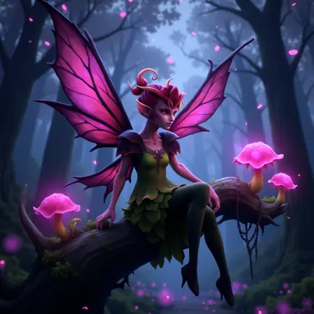 DarkWillowがトリガー単語です。彼女に翼があることを確実にするには、プロンプトに「wings」という単語を追加してください。