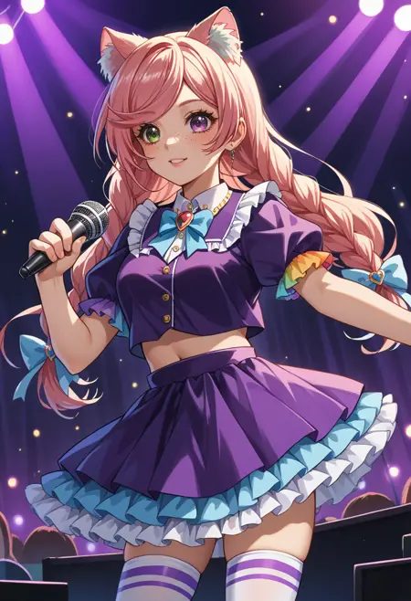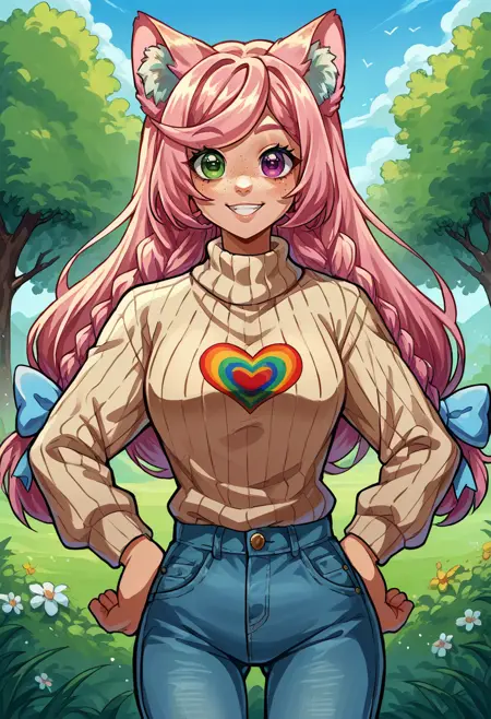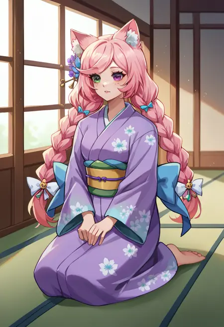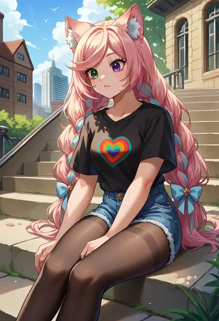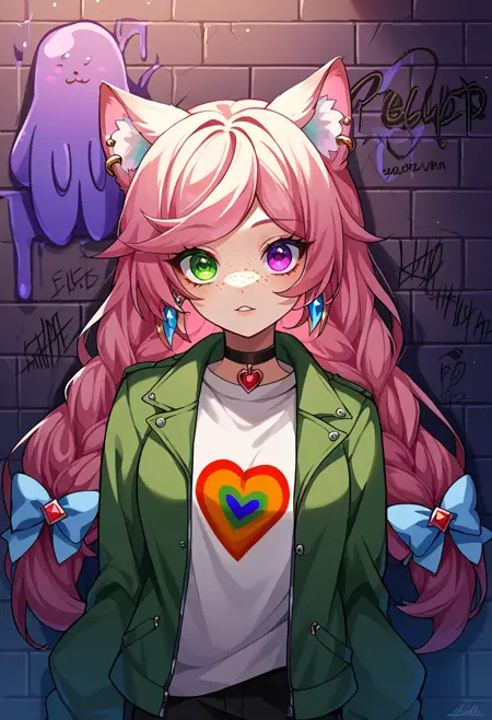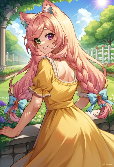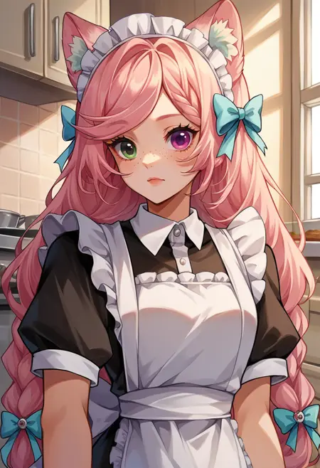 EveryLunaEver, heterochromia, freckles, animal ears, long hair, twin braids, hair bow