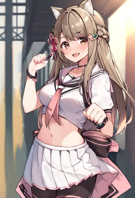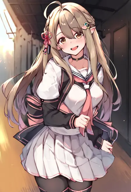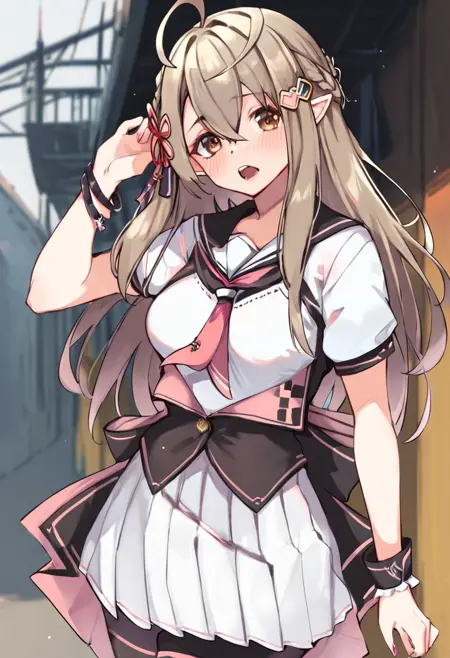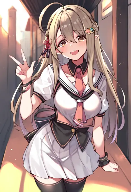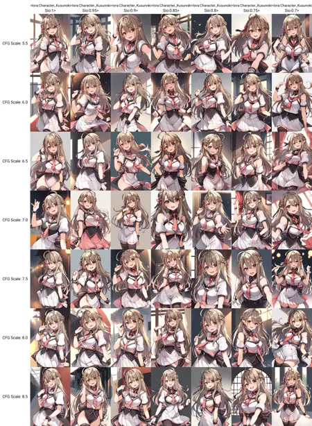 모듈식 LoRA: 시오시오는 옷차림과 분리되어 있으며, 다른 캐릭터도 그녀의 옷차림을 입을 수 있습니다(50/50 확률).