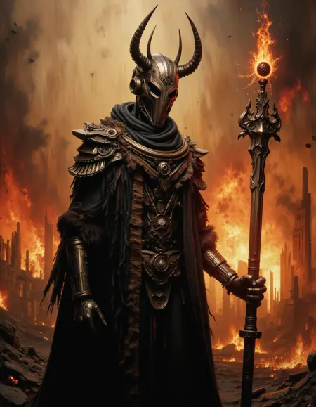 성배 배경 앞에서 검은 갑옷을 입은 붉은 ARob 악마
