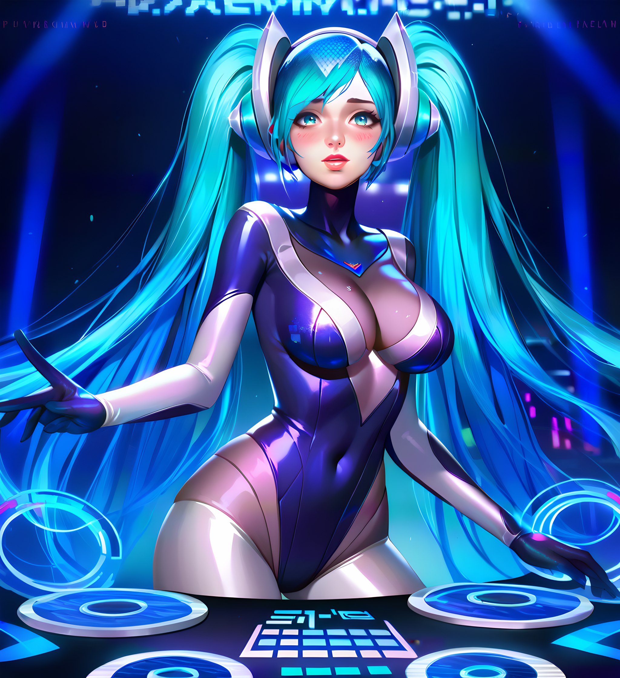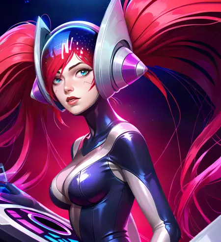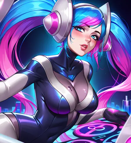 s0naDj, dj sona, 1girl, blue eyes, lipstick,