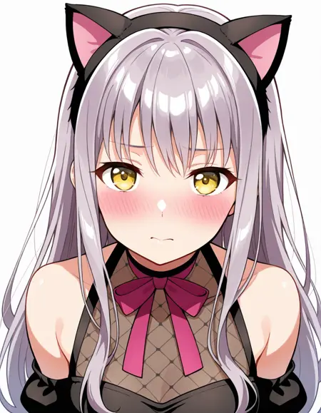 yukinacat, catt dress, off shoulder dress,cat ears, catt neck ribbon, catt gloves, catt fake animal ears, catt thighhighs, catt tail, tail ribbon