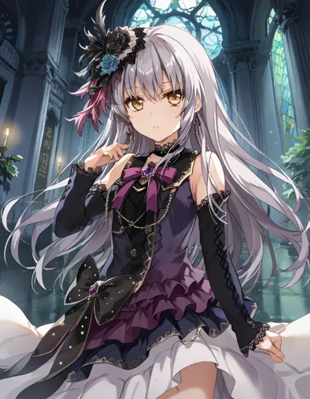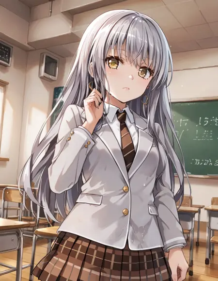 미나토 유키나, 긴 머리, 회색 머리, 노란 눈