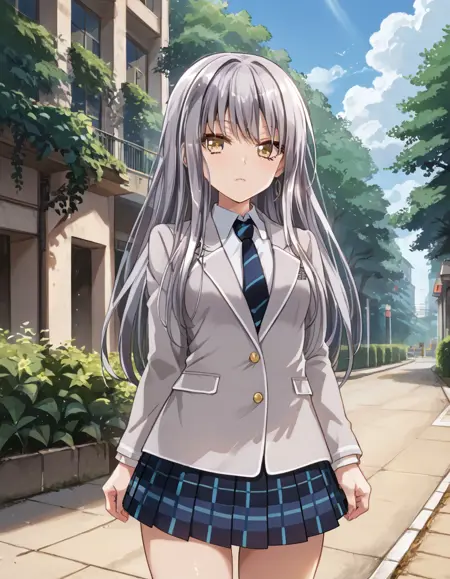 유키나스클, 대각선 무늬 넥타이, 스클 블레이저, 스클 스커트, 체크무늬 스커트, 스클 넥타이, 스클 셔츠