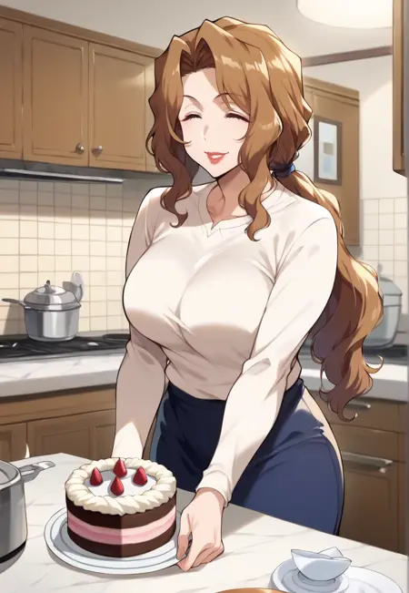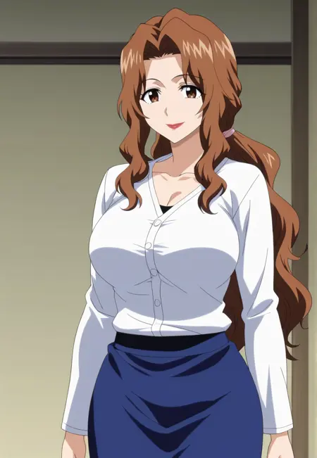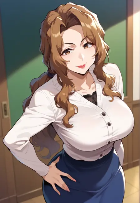 긴 머리, 웨이브 머리, 갈색 머리, 갈색 눈, 메이크업, 립스틱, 큰 가슴,