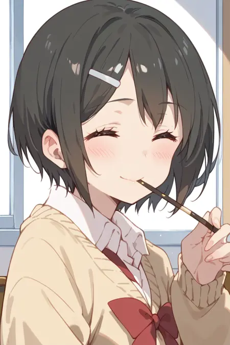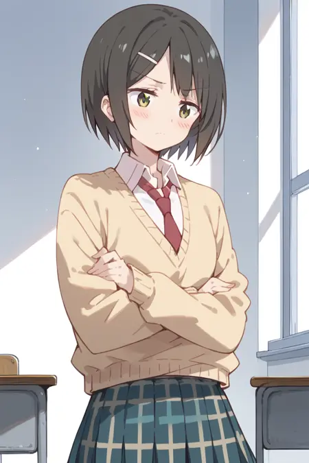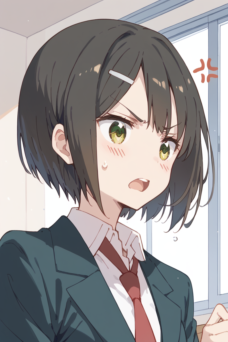 kaede, 1girl, hairclip, school uniform, necktie, blazer/sweater