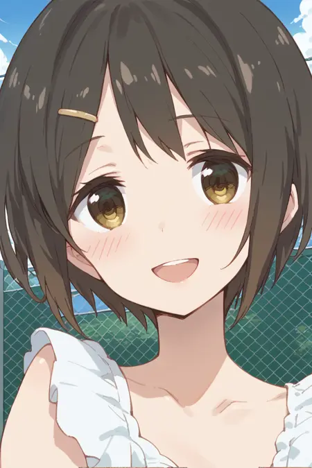 카에데, 1girl, 헤어클립, 검은 머리 사용.