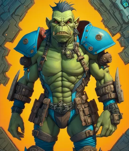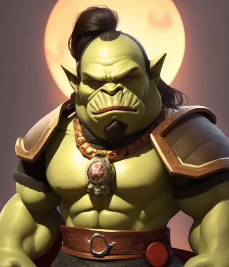 참고: 이 모델은 노출이 포함된 이미지로 훈련되지 않았지만, 데이터셋에 대부분의 오크들이 상의 없이 등장하기 때문에 여성 오크 캐릭터가 일부 노출될 수 있습니다. 이를 피하려면 부정적 프롬프트에 "shirtless" 또는 "topless"를 입력하면 됩니다.