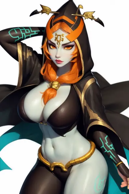 이 LoRA의 핵심 키워드는 'twili midna'입니다. 이 키워드만으로도 대부분의 디자인 특성이 드러나지만, 더 일관된 디자인을 원하신다면 아래 태그들을 일부 추가해 보세요. (모두 한 번에 추가하지 마세요. 원하는 효과를 위해 필요한 것만 추가하세요.)