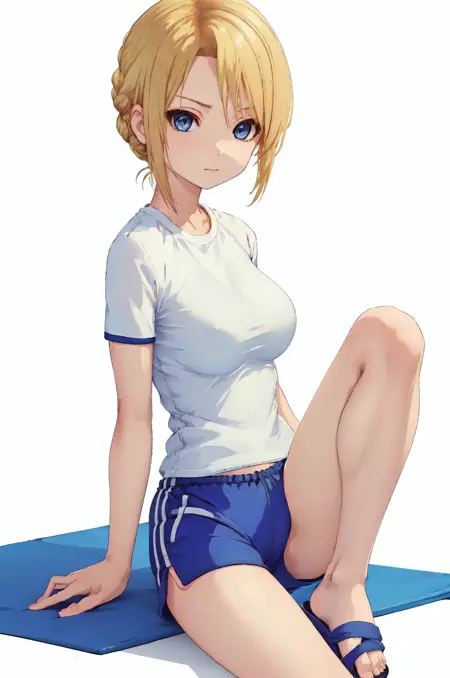 prompt - ceciliaPangya, blonde hair, short hair, blue eyes, medium breasts