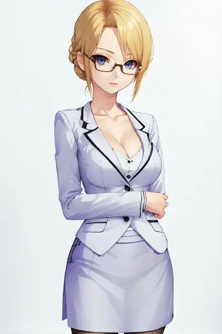 3 - mainSet, high heels, pencil skirt, suit, formal, white pantyhose, glasses