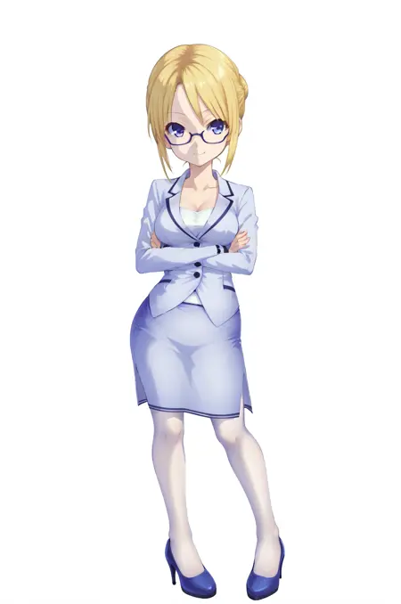 3 - mainSet, high heels, pencil skirt, suit, formal, white pantyhose, glasses