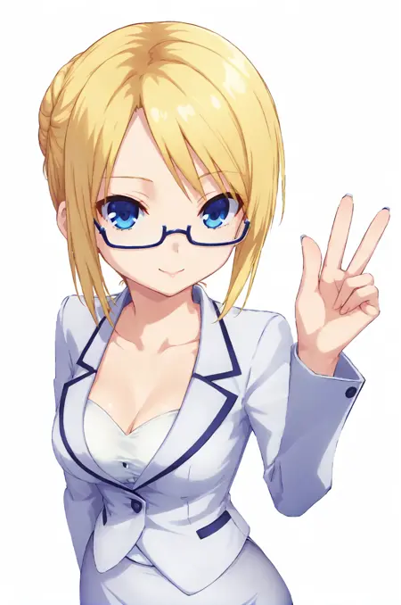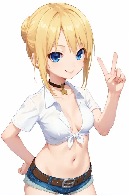prompt - ceciliaPangya, blonde hair, short hair, blue eyes, medium breasts