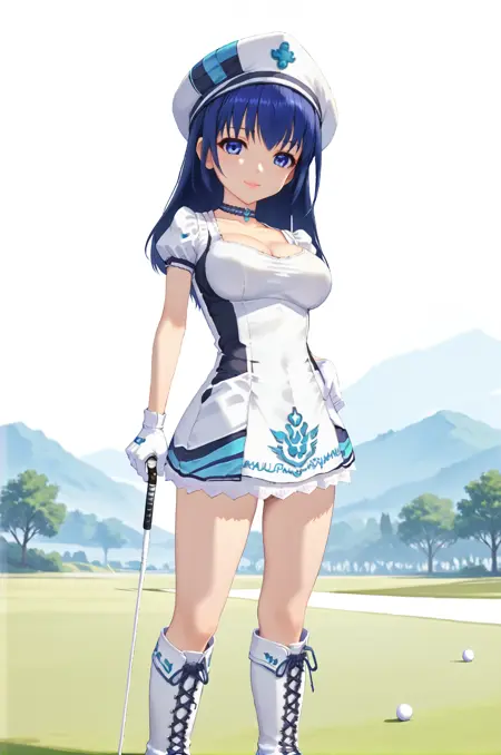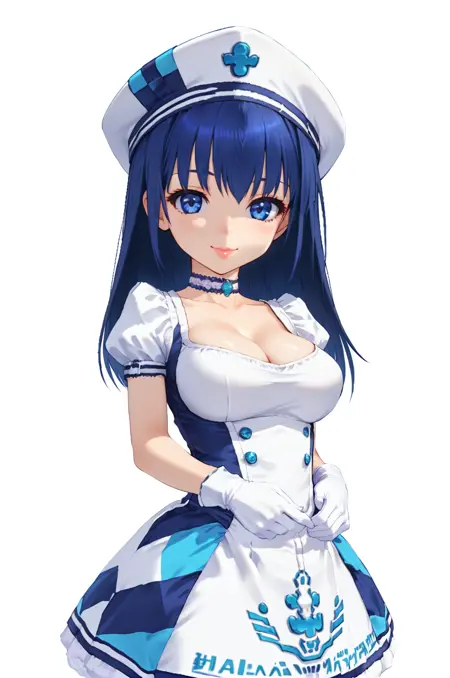 prompt - arinPangya, blue hair, blue eyes, long hair, bangs, large breasts, lips