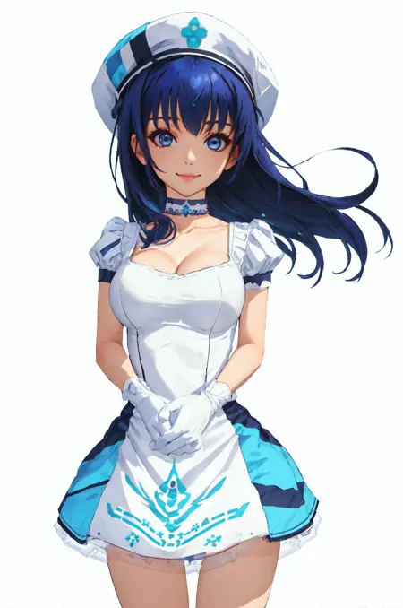 プロンプト - arinPangya、青髪、青目、長髪、前髪、大きな胸、唇