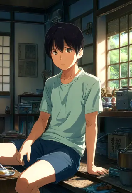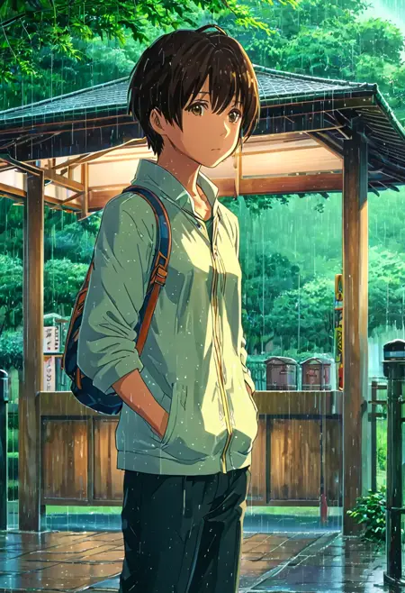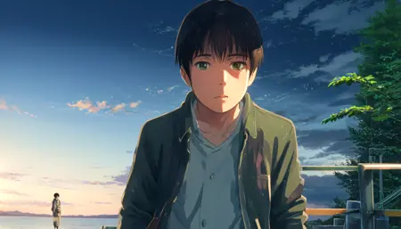 다음과 같은 태그를 사용하세요: By makoto shinkai, anime, art by makoto shinkai