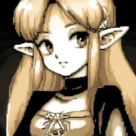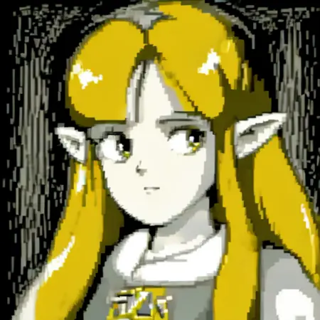 Gameboyのパズニックというゲームからのモノクロレトロピクセルポートレートを4倍に拡大。576x576の画像の生成を推奨し、オプションで144x144に縮小。推奨ウェイトは0.6。調整可能で、ときにはピクセル正確な画像を生成可能。パレットは限定的だが、カラーバージョンでも動作可能。