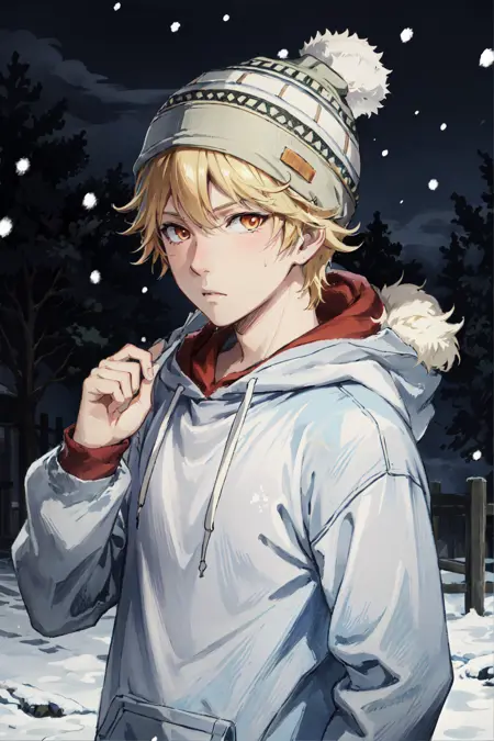 由纪涅 2:由纪涅,1位男孩,连帽衫,毛线帽,金发