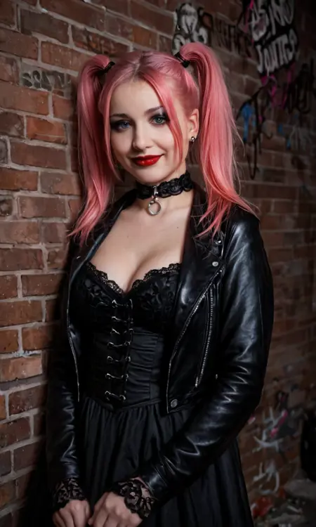 踏入神秘与魅力的世界,与莉莉丝·暗蔷薇一同领略哥特式优雅与极致美丽的完美平衡。她以醒目的粉色头发高高扎成双马尾或双辫,散发出力量与谜团的气场。她那锐利的蓝色眼眸,与深浓的妆容形成鲜明对比,捕捉了游走于阴影与光明之间的灵魂本质。
