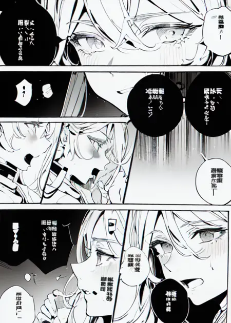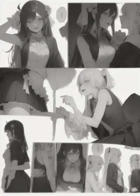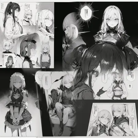 在提示词中包含关键词:“manga, greyscale, monochrome, high contrast, linearts”将有助于生成更佳的漫画效果。
