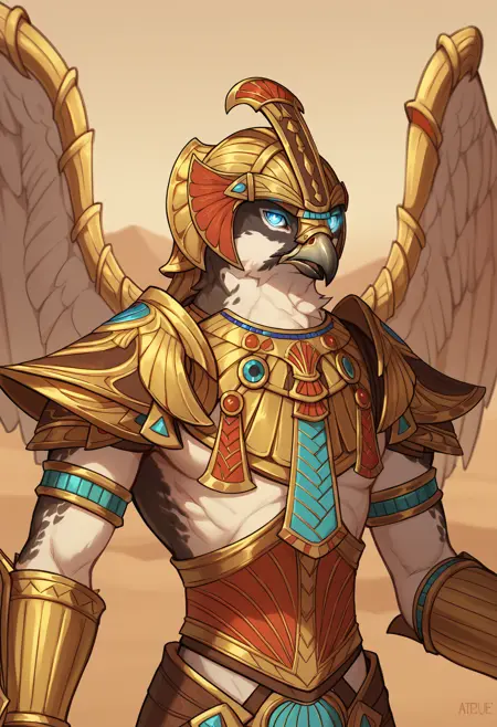 衣装タグ: (頭飾り)、羽、肩甲 armor、ブレイサー、脚の armor